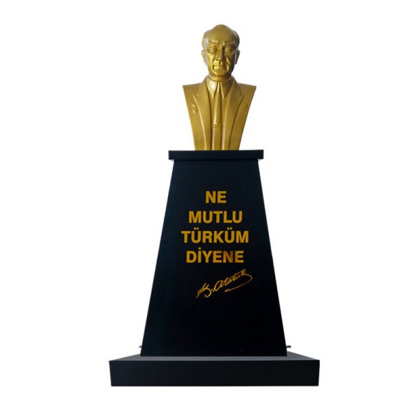 Atatürk Büstü kaidesi olarak imal ettiğimiz bu modelin çift taraflı paslanmaz galvaniz sac üzerine elektrostatik fırın boya yapılmıştır . Alt kısmında yere montajıda yapılabilen hazır kaide modelinin, üzerindeki yazı gold renginde folyo harf den istenilen metin yazılacaktır. Üst kısımdaki Atatürk Büstü 70 cm yüksekliğinde profesyonel modeldir.